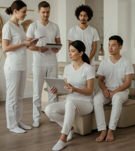 In Wellness und Gesundheitsbetrieben arbeiten unterschiedliche Berufsgruppen eng zusammen. Ein funktionierendes Team ist Voraussetzung für reibungslose Abläufe und gleichbleibende Qualität. Flexibilität, gegenseitige Unterstützung und die Bereitschaft, Verantwortung zu übernehmen, sind dabei zentrale Faktoren.